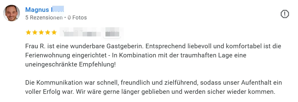 Zitat einer Bewertung eines Gastes auf Google Rezensionen